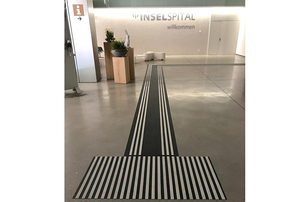 Wir durften bei der Insel Gruppe AG Gebäude mit einem taktilen Leitsystem für Menschen mit Sehbeeinträchtigung ausstatten.