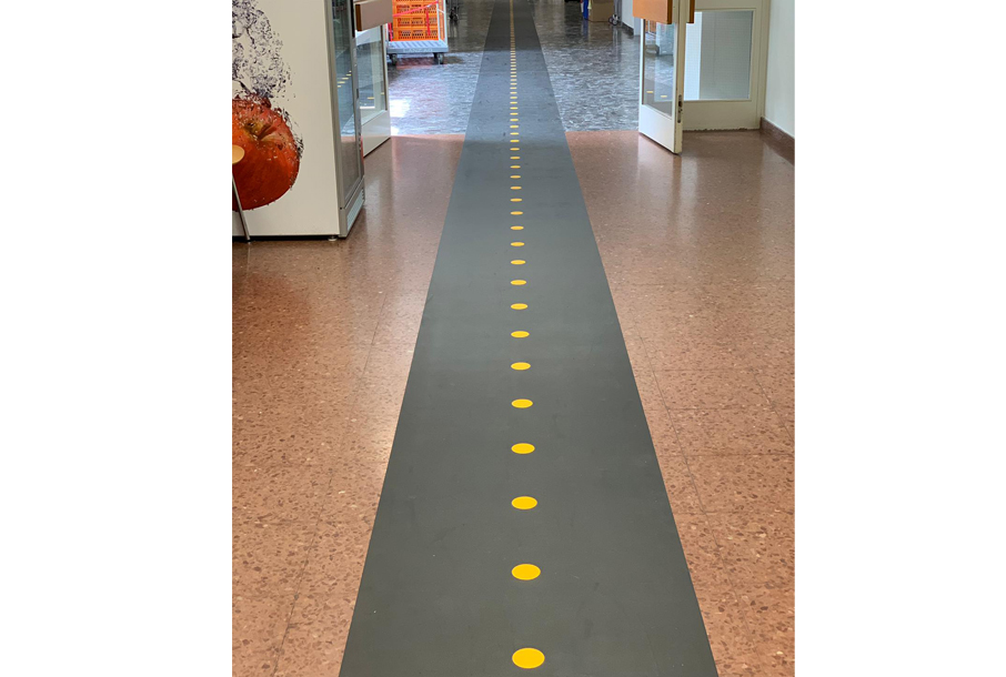 Ideal für den barrierefreien Umbau: Die taktilen Bodenmarkierungen lassen sich schnell und einfach aufkleben.