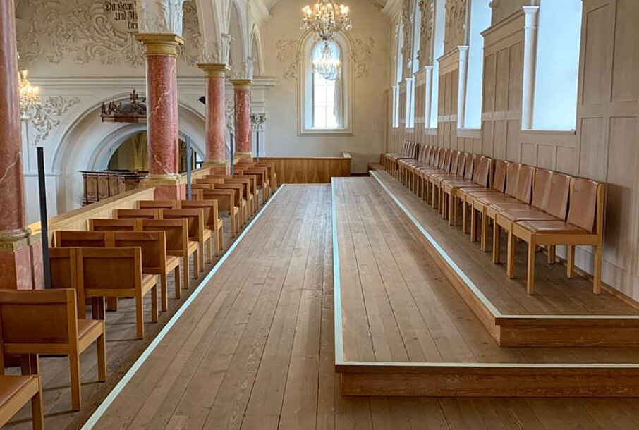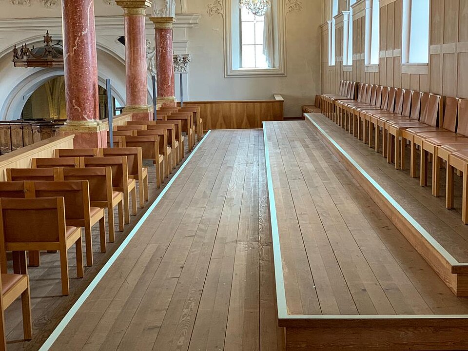 Unser Team durfte in einer Kirche die Treppenstufen mit einem speziellen selbstklebenden Bodenmarkierungsband kennzeichnen. Das langnachleuchtende Band weist ebenfalls eine Antirutsch-Oberfläche auf, damit die Stufen nicht nur im Dunkeln erkennbar sind, sondern auch rutschsicher sind.
