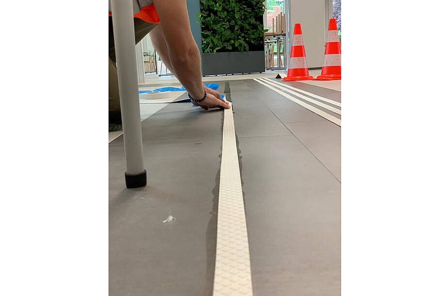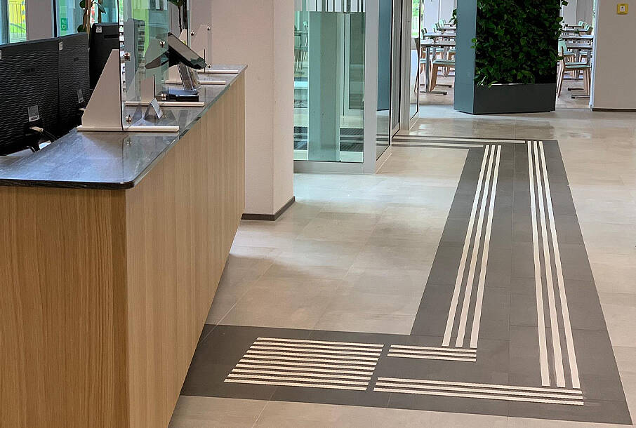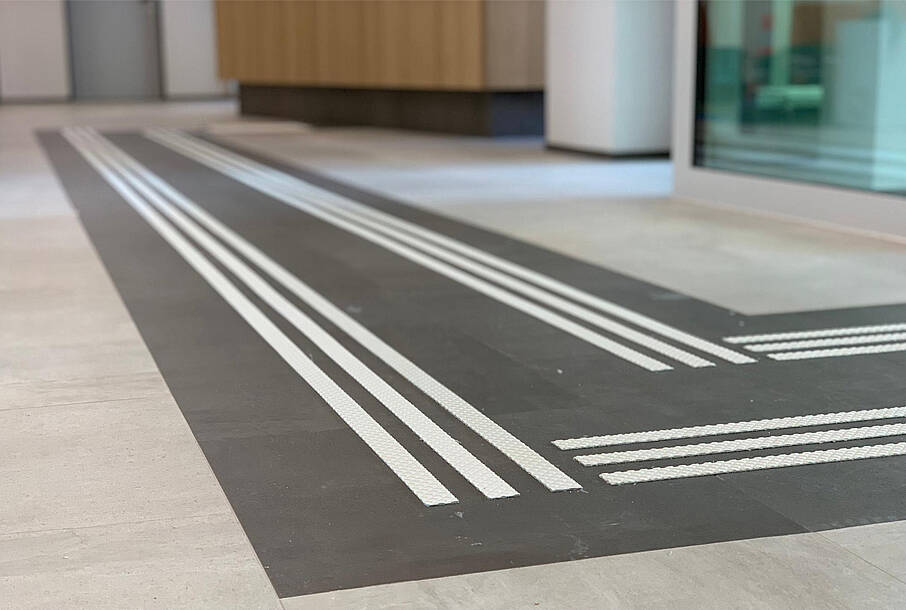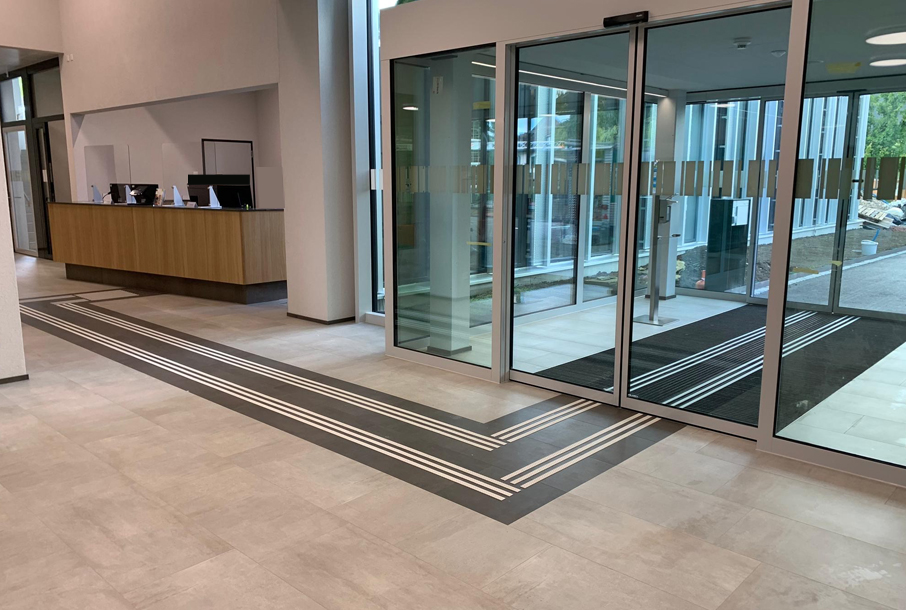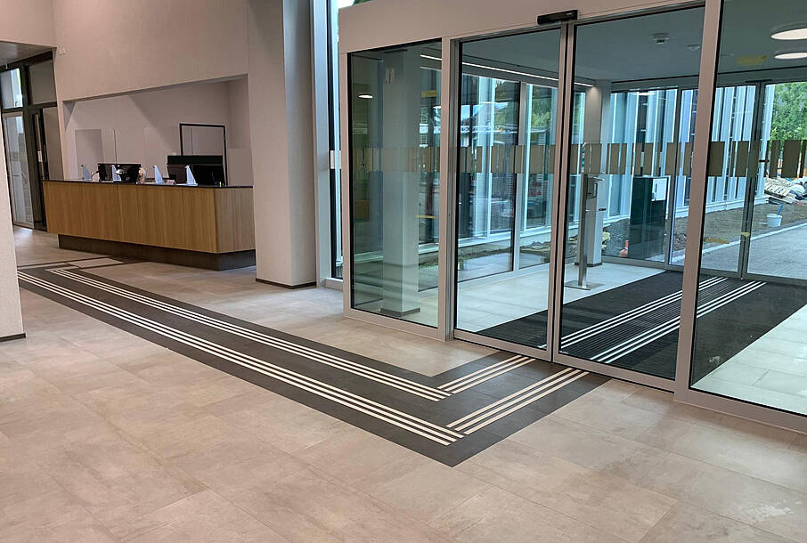 In St.Gallen steht das neue Kompetenzzentrum von Obvita für Sehberatung und berufliche Integration. Wir durften im Eingangsbereich ein selbstklebendes, taktiles Leitsystem anbringen.